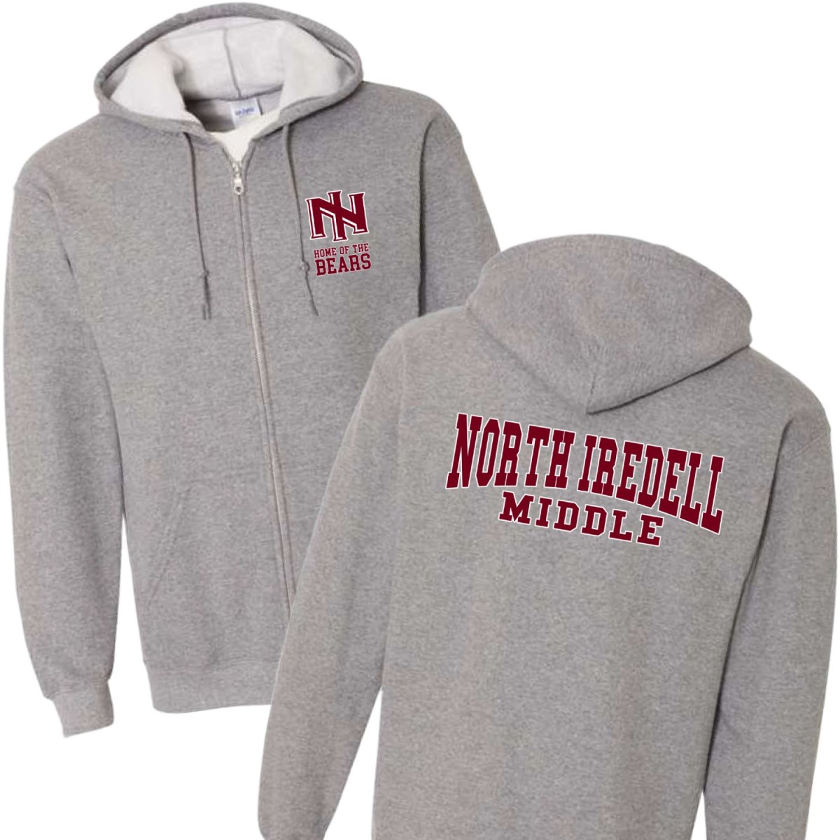This is the Gildan Unisex Heavy Blend™ Full-Zip Hooded Sweatshirt – Style 186 in Grey. Crafted from a warm 50/50 cotton/polyester fleece blend with a soft brushed interior, it offers cozy durability and retains its shape wash after wash. A bold, front-left chest screen-printed design and full back pops against the mid-grey fabric—perfect for layering over tees or wearing solo on crisp days.
